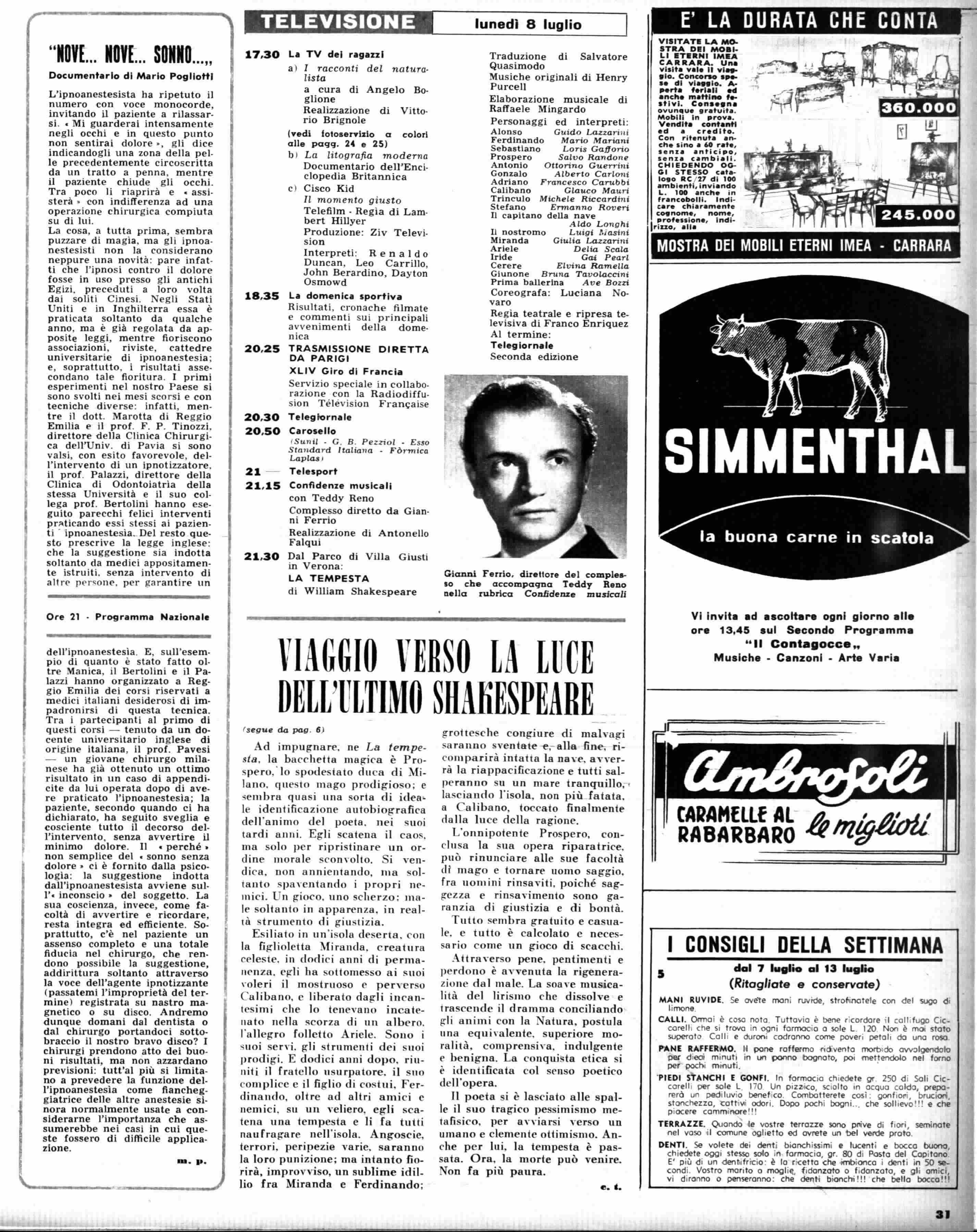 - La tempesta di William Shakespeare, Giardino di Palazzo Giusti di Verona, 4 luglio 1957.[58]